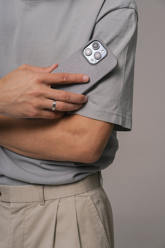 Сірий шкіряний чохол для iPhone 15