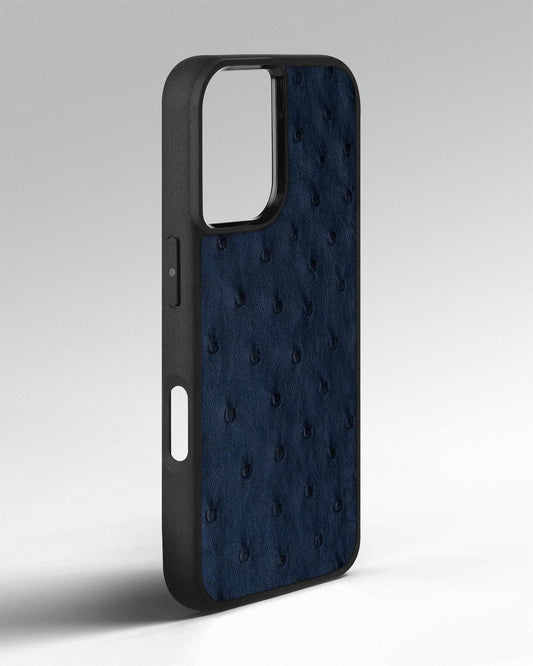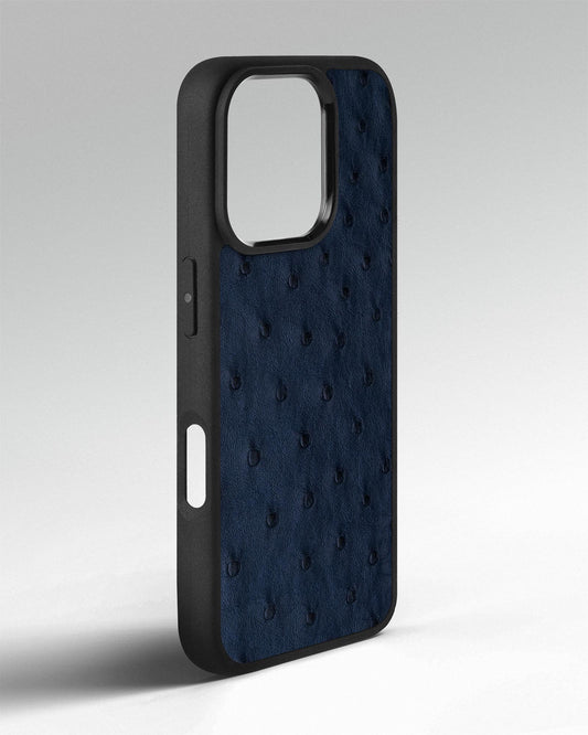 Чохол із темно-синьої шкіри страуса з фолікулами для iPhone 16