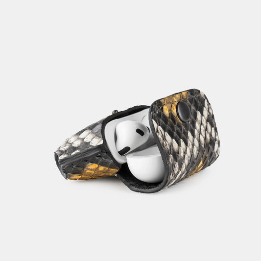 Чохол для AirPods із сіро-жовтої шкіри пітона з дрібними лусочками