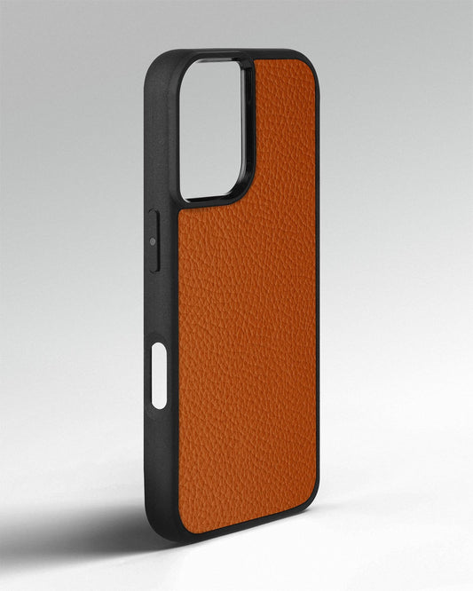 Case made of orange ostrich leather with follicles for iPhone 12 Pro