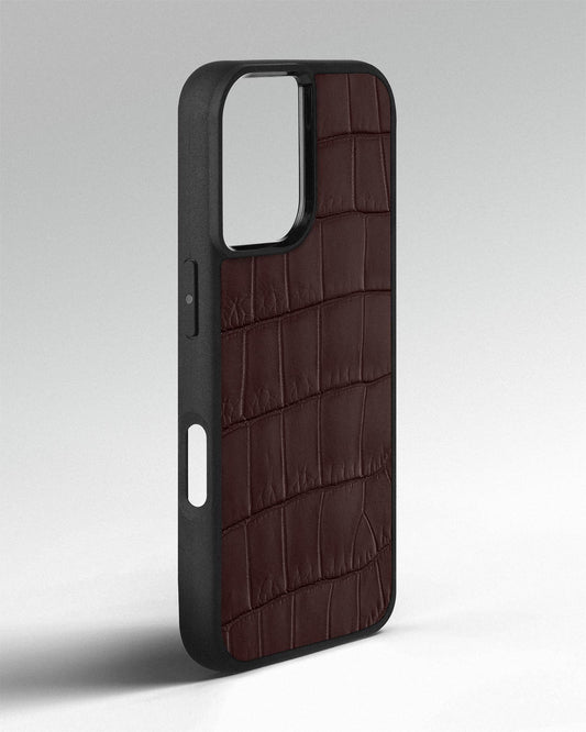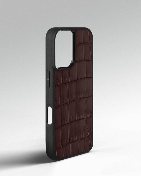 Dark brown crocodile leather case for iPhone 15