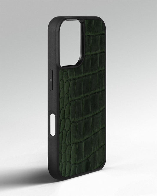 Dark green crocodile embossing calfskin case for iPhone 16