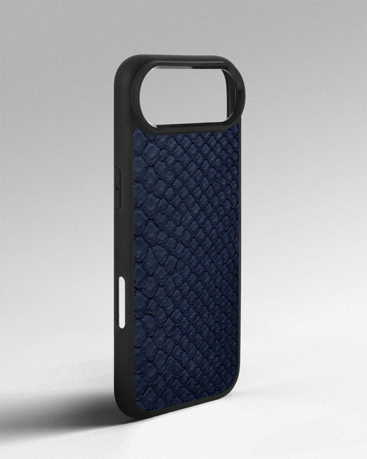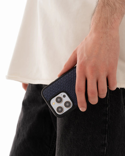 Dark blue small scale python leather case for iPhone 15 Pro Max