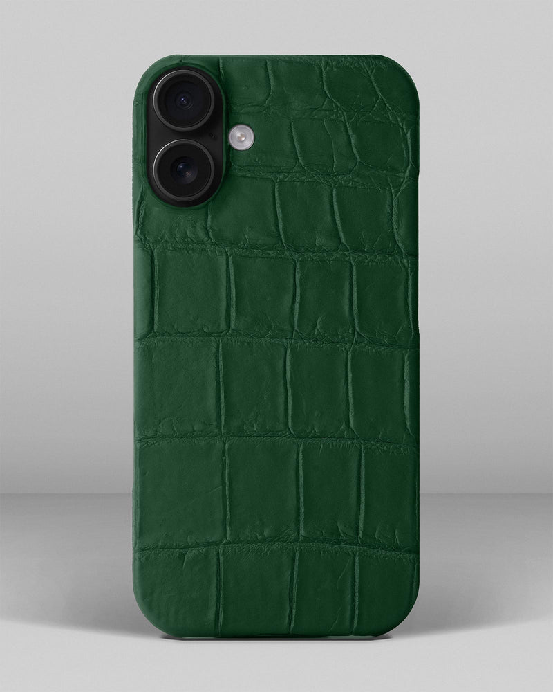 Темно-зелений чохол обтягнутий шкірою крокодила для iPhone 16 Plus