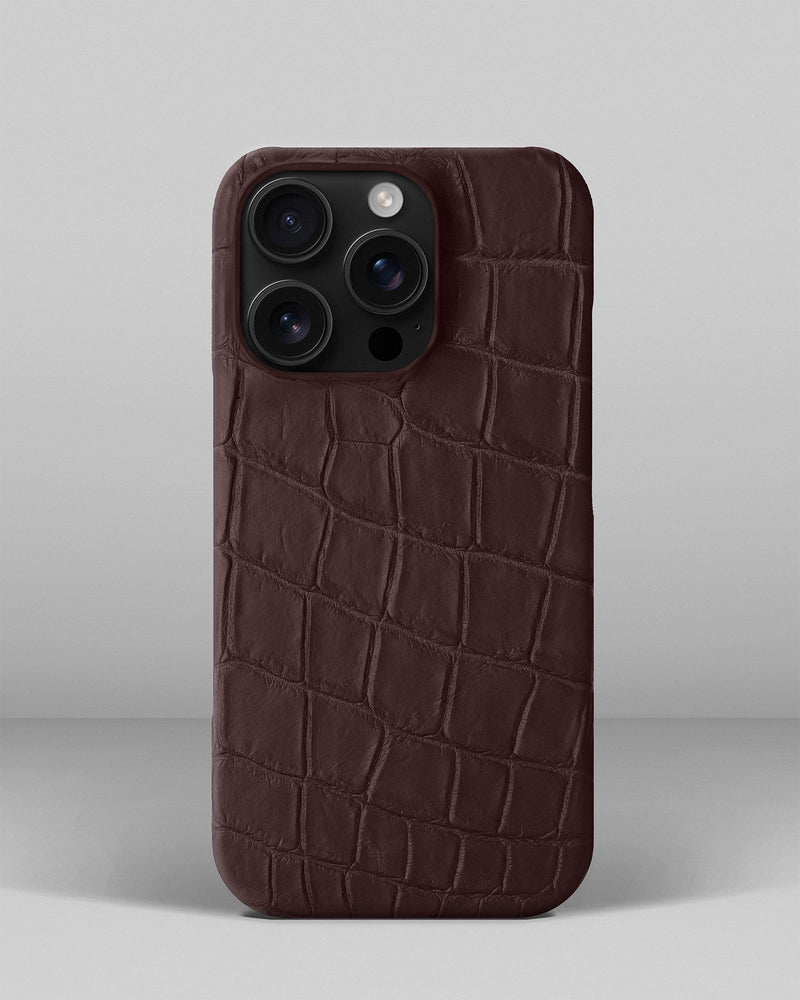 Темно-коричневий чохол обтягнутйи шкірою крокодила для iPhone 16 Pro