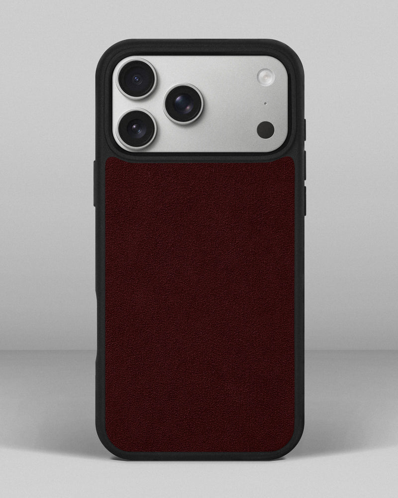 Чохол із бордовою вставкою з алькантари для iPhone 17 Pro Max
