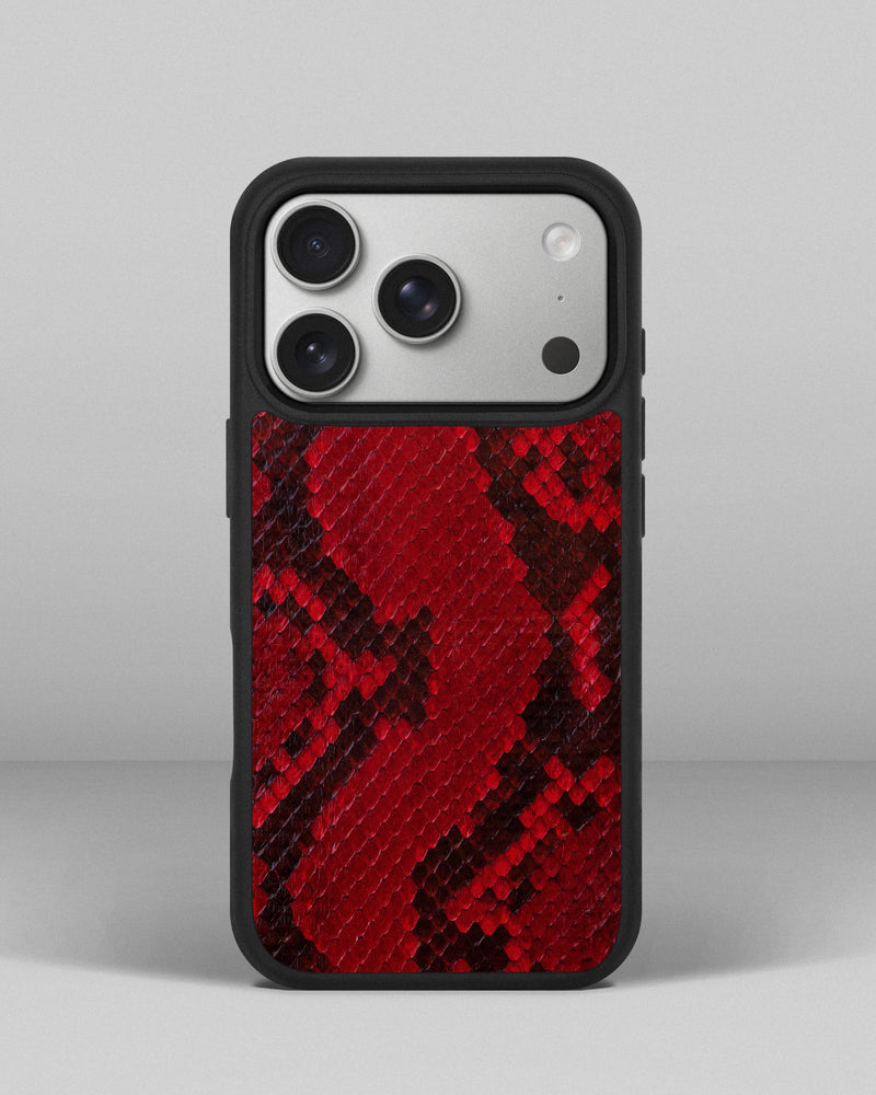 Чохол із червоної шкіри пітона з дрібними лусочками для iPhone 17 Pro