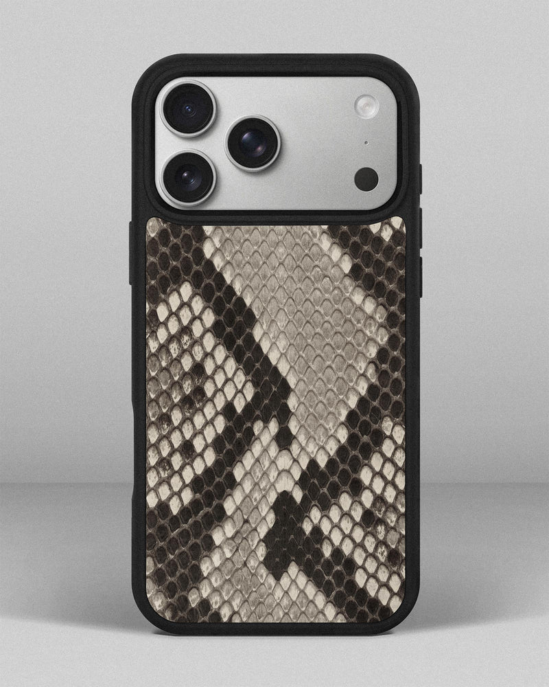 Чохол із чорно-білої шкіри пітона з дрібними лусочками для iPhone 17 Pro Max