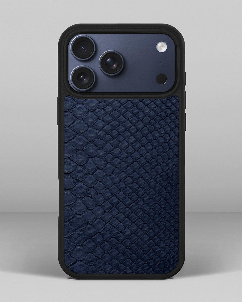 Чохол із темно-синьої шкіри пітона з дрібними лусочками для iPhone 17 Pro Max