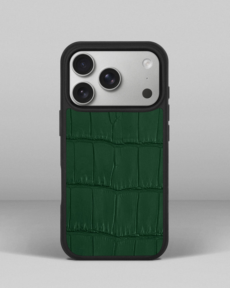 Чохол із темно-зеленої шкіри крокодила для iPhone 17 Pro