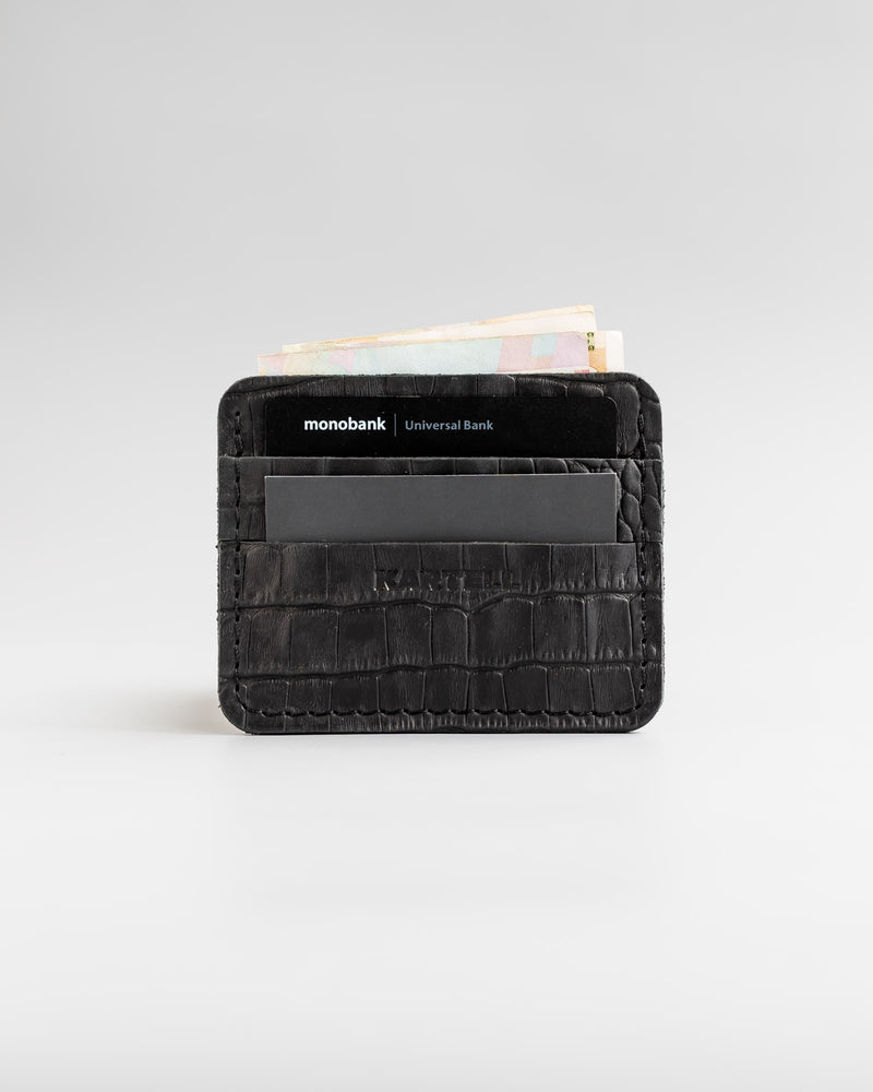 Кардхолдер из телячьей кожи, тисненой под крокодила в черном цвете