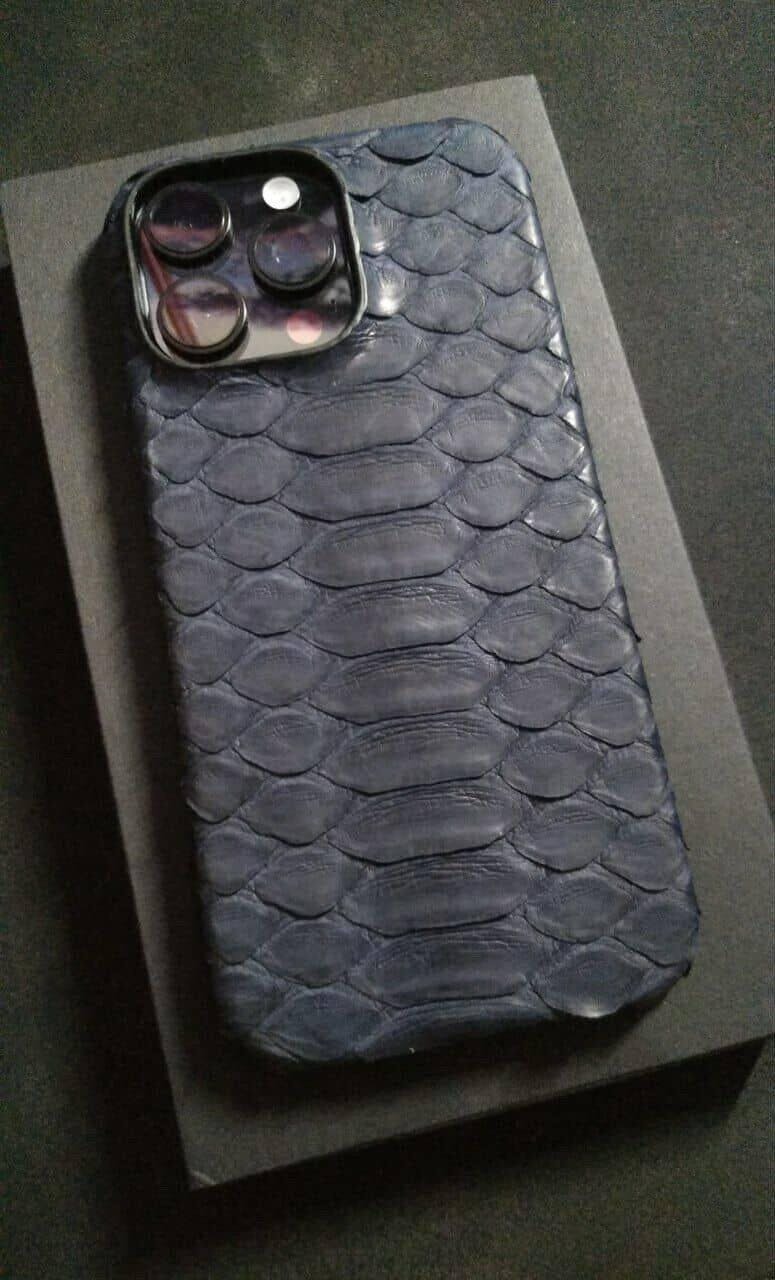 - Преміум шкіра:Чохол обтягнутий натуральною шкірою пітона, яка славиться своєю витривалістю та розкішним виглядом. Шкіра пітона надає чохлу ексклюзивності та елегантності, водночас забезпечуючи відмінний захист від подряпин та зношування.