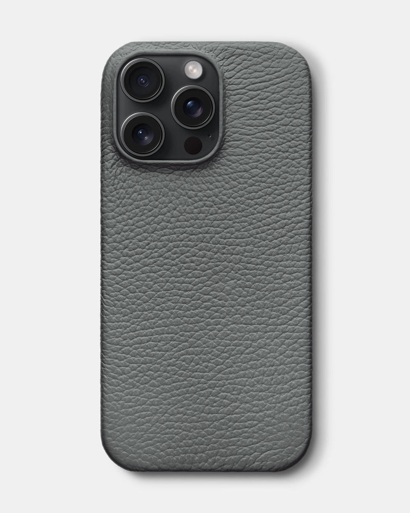 Сірий обтягнутий чохол з телячої шкіри для iPhone 15 Pro Max