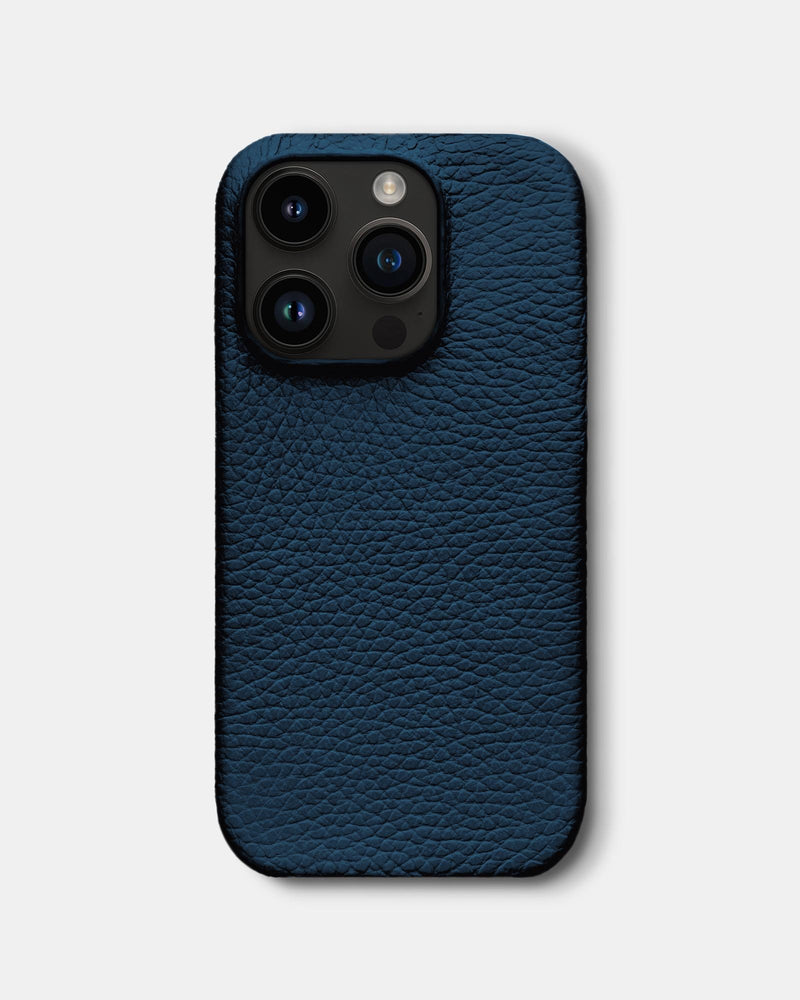 Темно-синій обтягнутий чохол з телячої шкіри для iPhone 14 Pro