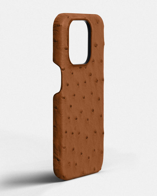 Шкіряний чохол з темно-коричневого страуса для iPhone 15 Pro Max