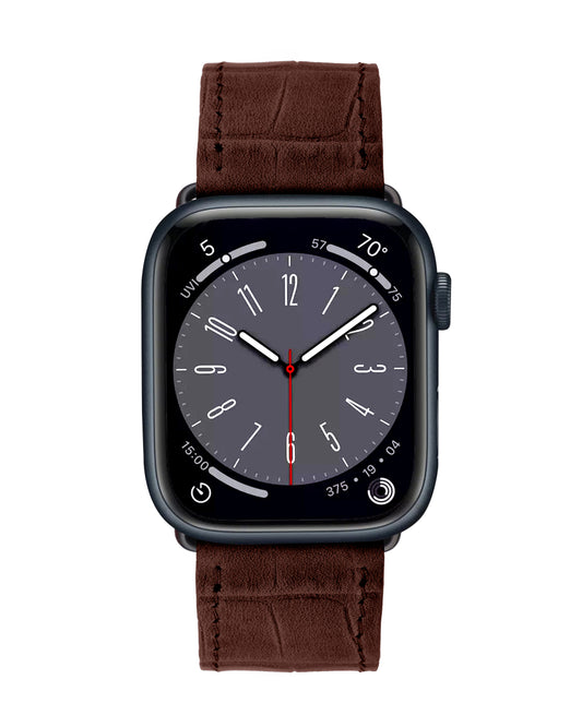 Ремінець для Apple Watch з телячої шкіри, тисненої під крокодила у темно-коричневому кольорі