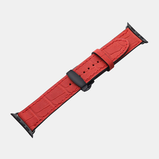 Ремінець для Apple Watch з телячої шкіри, тисненої під крокодила у червоному кольорі