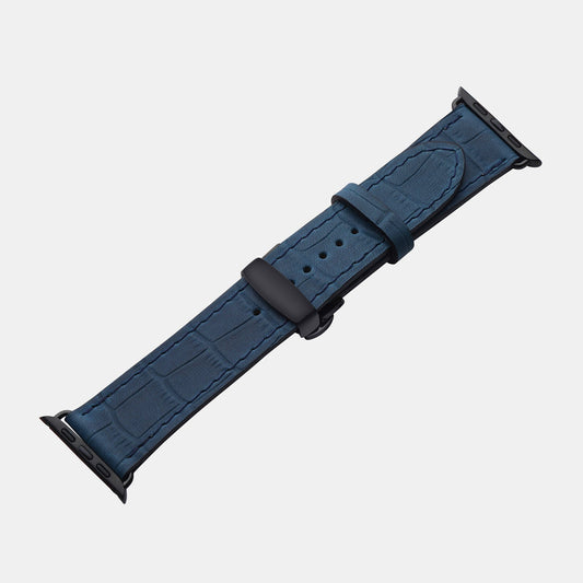 Ремінець для Apple Watch з телячої шкіри, тисненої під крокодила у темно-синьому кольорі