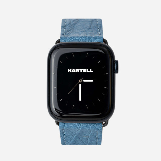 Ремінець для Apple Watch зі шкіри страуса в блакитному кольорі з фолікулами