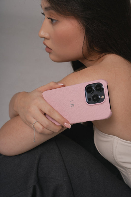 Рожевий шкіряний чохол для iPhone 16 Pro