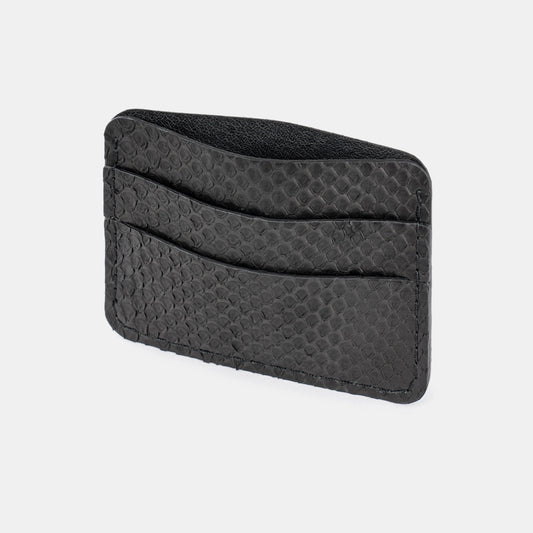 Кардхолдер з чорної шкіри пітона з дрібними лусочками