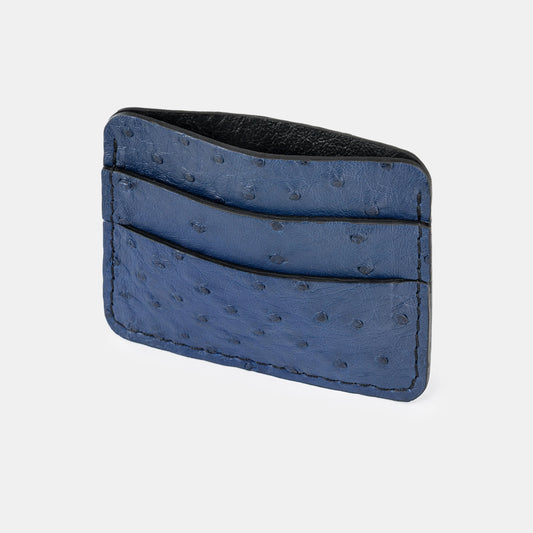 Кардхолдер з темно-синьої шкіри страуса без фолікул
