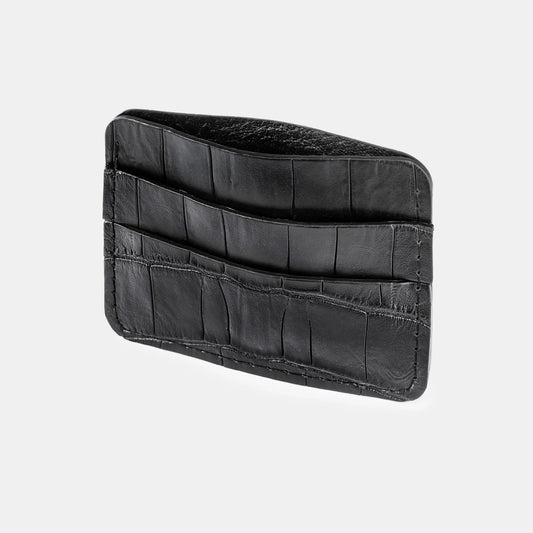 Кардхолдер з чорного тиснення під крокодила на телячій шкірі