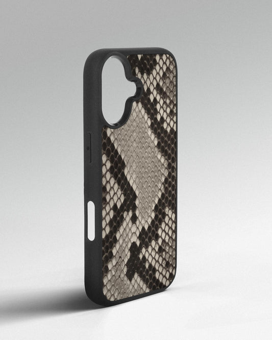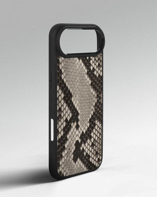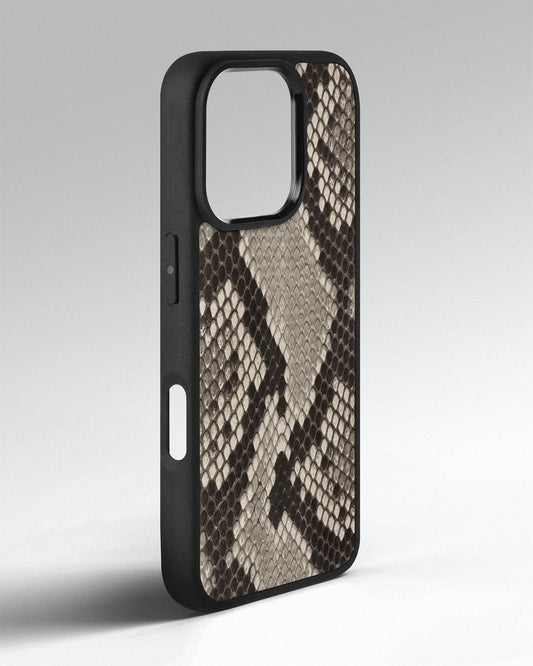Чохол із чорно-білої шкіри пітона з дрібними лусочками для iPhone 16 Pro