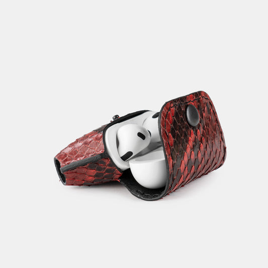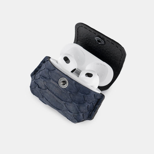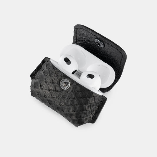 Чохол для AirPods із чорної шкіри пітона з широкими лусочками