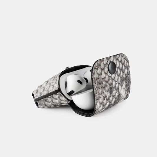 Чохол для AirPods із чорно-білої шкіри пітона з дрібними лусочками