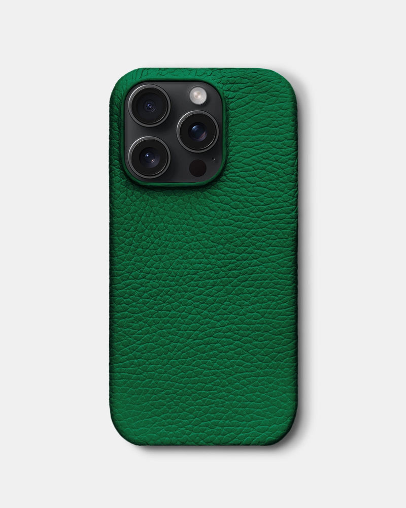 Яскраво-зелений обтягнутий чохол з телячої шкіри для iPhone 15 Pro
